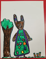 3rd and 4th grade students created a pattern bunny before spring weekend break. First students watched an educational video showing different facts about rabbits and their lifestyle. Then they followed along to draw a bunny, leaving space inside the ears and stomach for a pattern design.