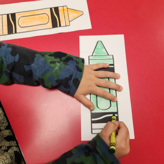 Kindergarten learned about the three secondary colors: Orange, Green, and Purple. Students spelled out the colors names, watched a video describing the color and then danced to a color song. They also filled in a white paper crayon with each secondary color, used scissors to cut each crayon shape out, and then glued them onto a background paper.