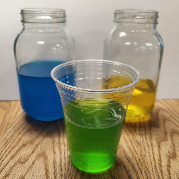1st grade watched a read aloud of the book Mouse Paint by Ellen Stoll Walsh. Then I demonstrated our color experiments by mixing Red, Blue and Yellow flavored drink powders. Students watched as yellow and blue created green, yellow and red created orange, and red and blue made purple. Then students documented our finding by coloring their mouse themed color equation worksheets.